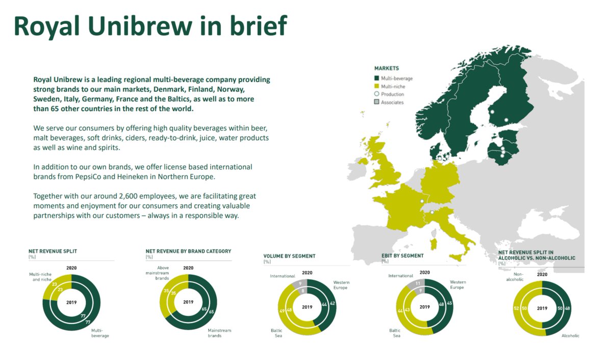 LTM EBIT margin 19% Royal Unibrew is a leading multi-beverage company with strong local brand portfolios in their main markets in the Nordic and Baltic regions, as well as Italy and France, with sales in >65 countries.