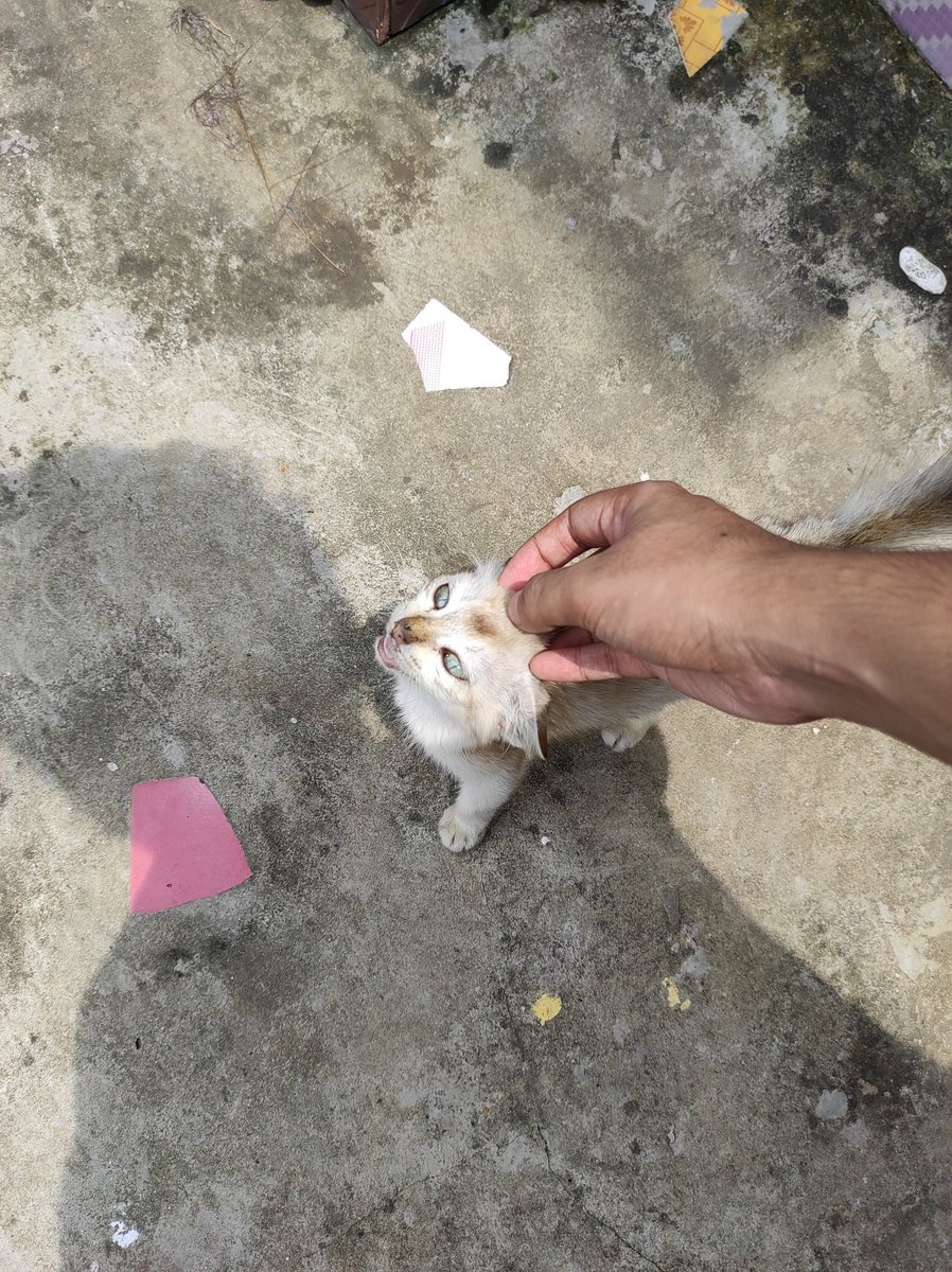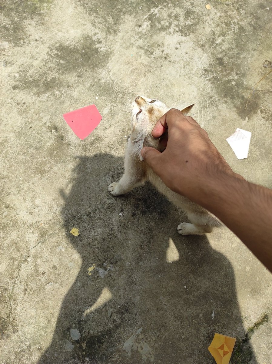 Gently pulling the tail of a stray #kitten and my cat😭❤️