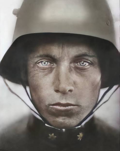 Vita ya pili ya dunia ilimalizika 1945 na HITLER alisha sarenda na mwanetu Evgeny unayemuona hapa alikua bado hai na akatunukiwa tuzo ya bato kadhaa alizopigana.Tho hakupewa tuzo ya ushindi dhidi ya Germany sabab muda wote wa mapigano alikua mateka wa vita..#PICHALINAENDELEA