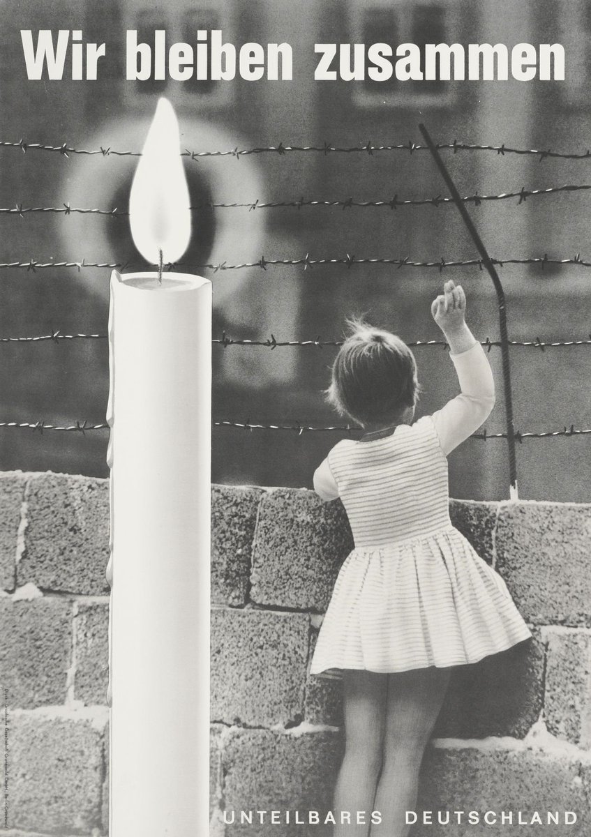 The poster was issued by the Board for the Indivisibility of Germany (Kuratorium Unteilbares Deutschland), founded in West Germany in 1954 to campaign for German reunification. 'Berlin, capital of Germany - open the gate!'
