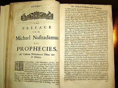 end-of-the-world prophecies (mainly from the Bible) and then through astrological readings of the past, projected these events into the future. According to Nostradamus, the world is slated to end in the year 3797.