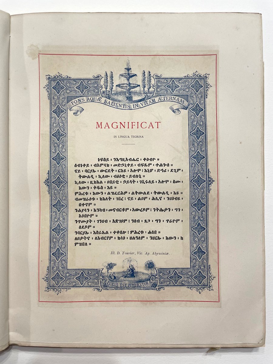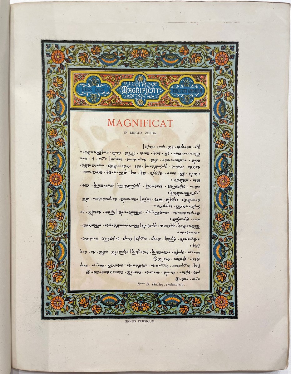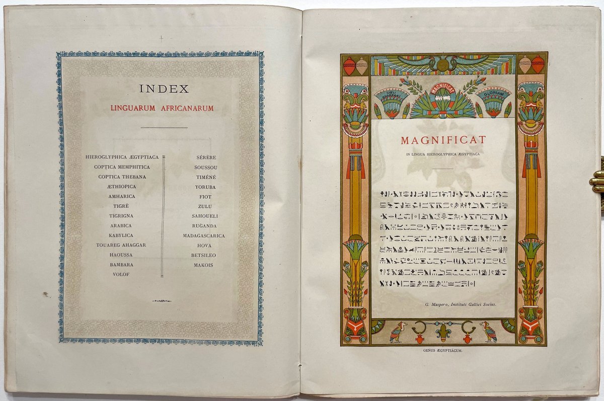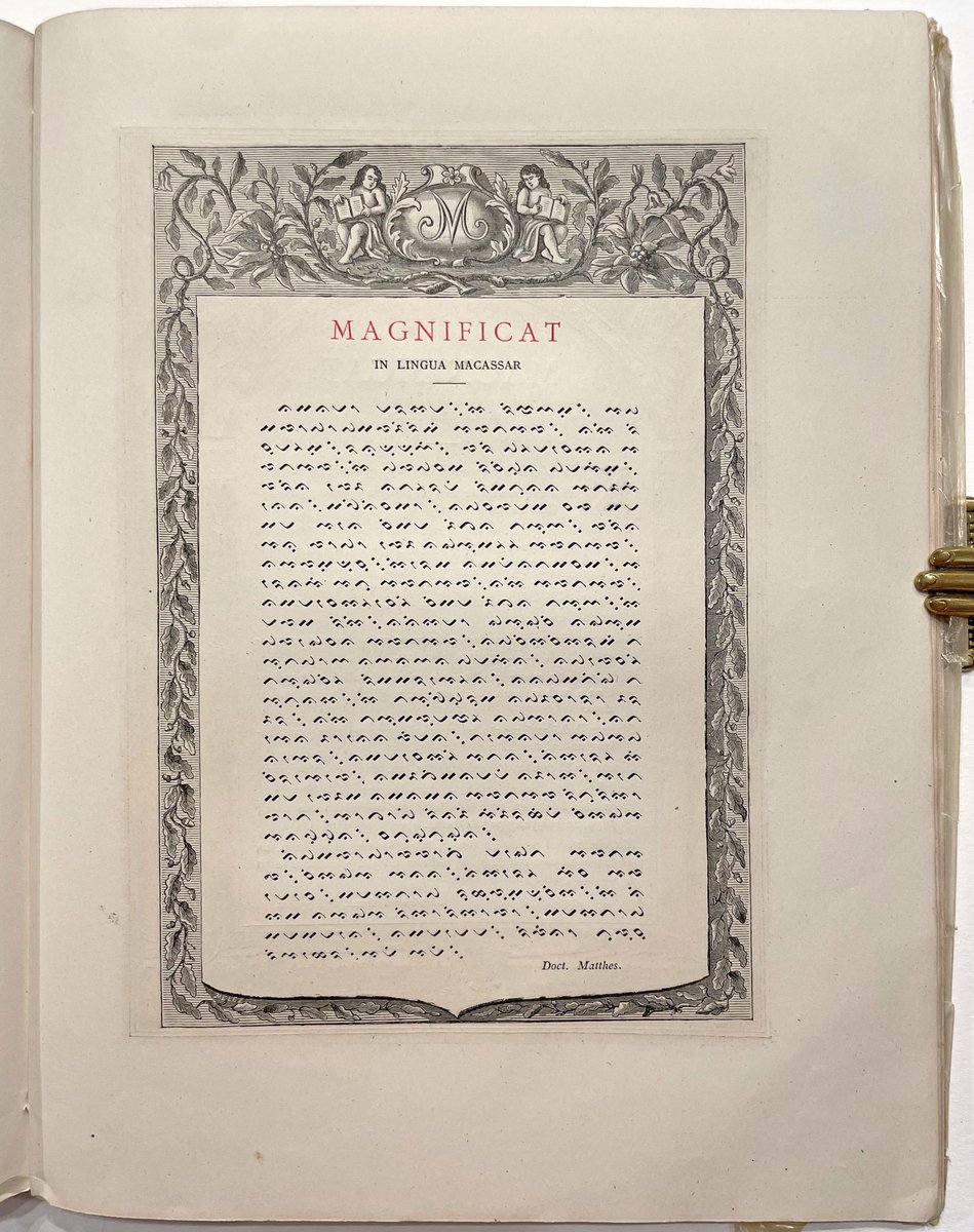 Perhaps the most ambitious mission polyglot ever: a rendering of the "Magnificat" in 150 languages, many in unique scripts. This 1887 publication from the monastic island of Saint-Honorat, off the coast of Cannes, was conceived by the monastery’s abbot Marie Bernard Barnouin. 1/
