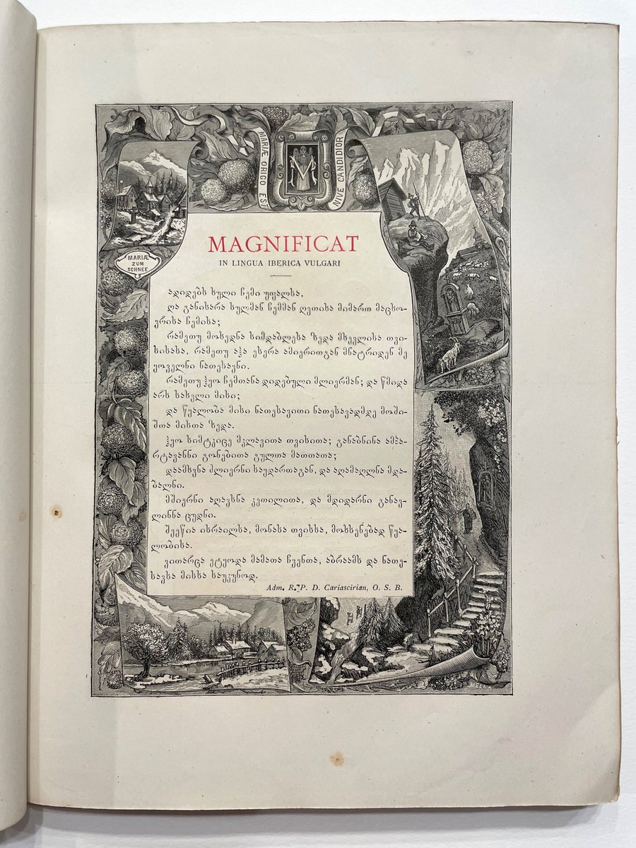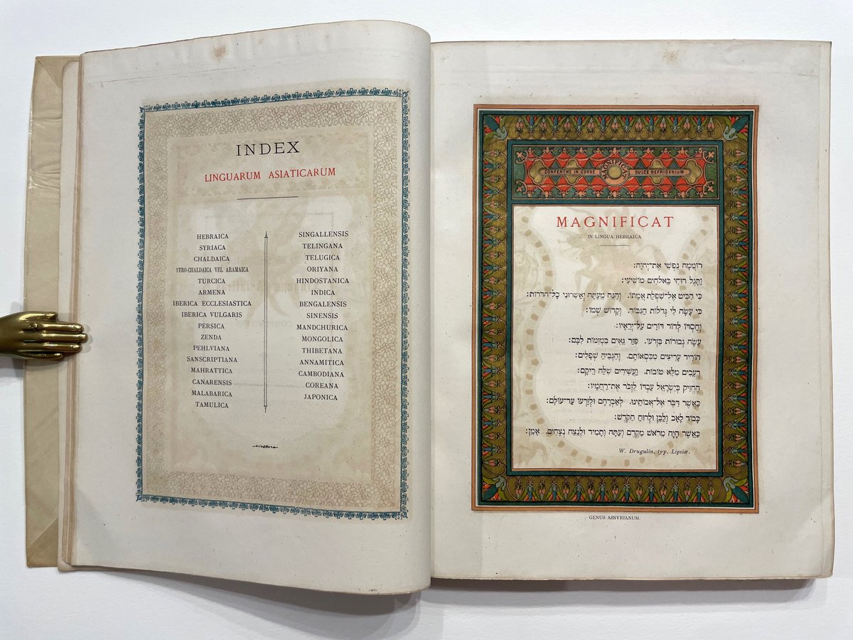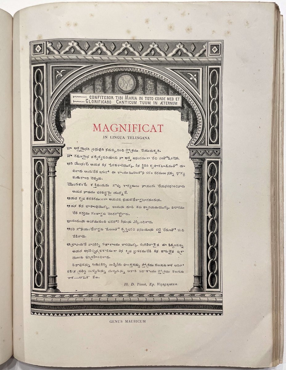 Perhaps the most ambitious mission polyglot ever: a rendering of the "Magnificat" in 150 languages, many in unique scripts. This 1887 publication from the monastic island of Saint-Honorat, off the coast of Cannes, was conceived by the monastery’s abbot Marie Bernard Barnouin. 1/