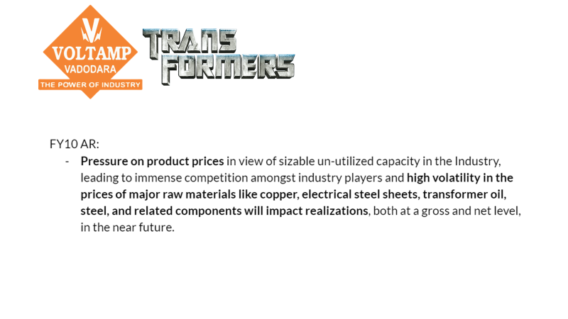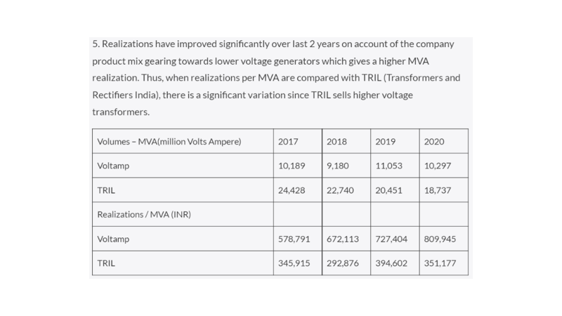 a. In a commoditized business, brand matters & how does one differentiate? Quality, service, and on-time delivery. Due to this for many companies like L&T, Siemens, etc, Voltamp will always be their 1st supplier of choice.