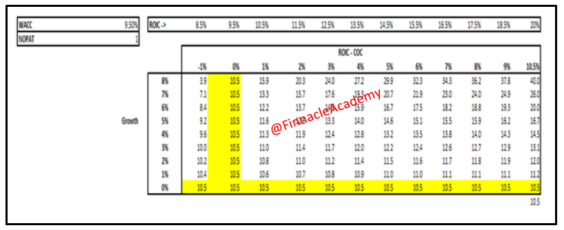 2. Same applies vice versa if your company is not growing but the ROIC of the company is increasing then also P/E wonβt change. (See the last row marked in Yellow in above snapshot) (10/n)