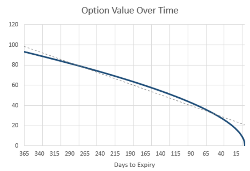 Ou seja, as opções vão emagrecendo com o passar do tempo porque os investidores vão pagando theta para se manter na posição.