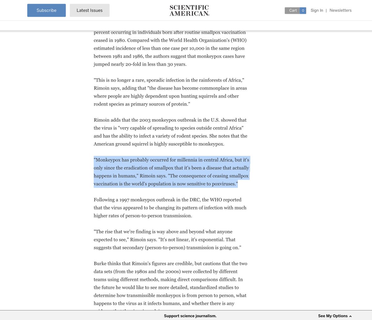 Monkeypox is a 'virus' that has an 'animal reservoir' โ meaning it cannot be 'eradicated'.