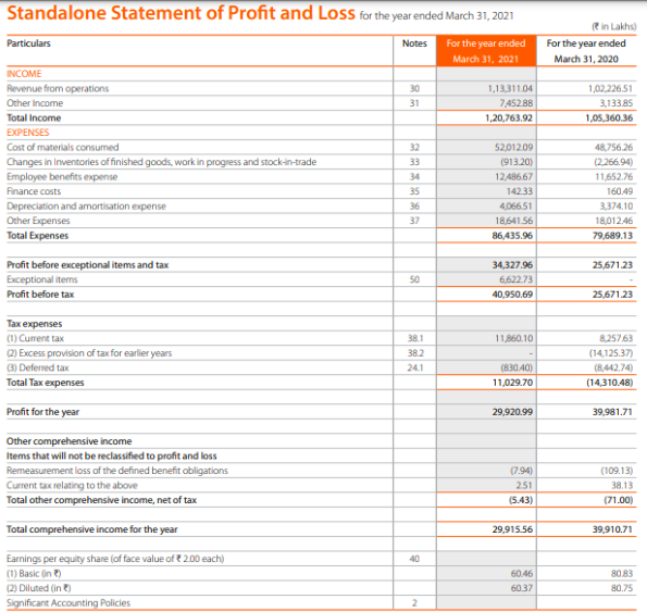 Statement of Profit & Loss is one of the most important part of financial statements which shows a company's revenue, expenses and the amount of Profit earned or Loss incurred by the company. It is also known as Income Statement.