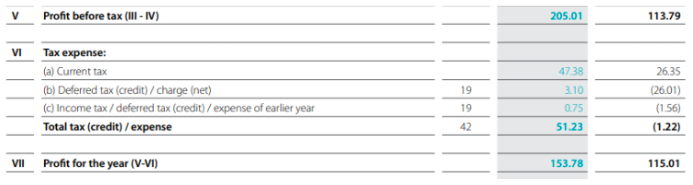 After exceptional items we get the amount of Profit before Tax, which can be calculated as