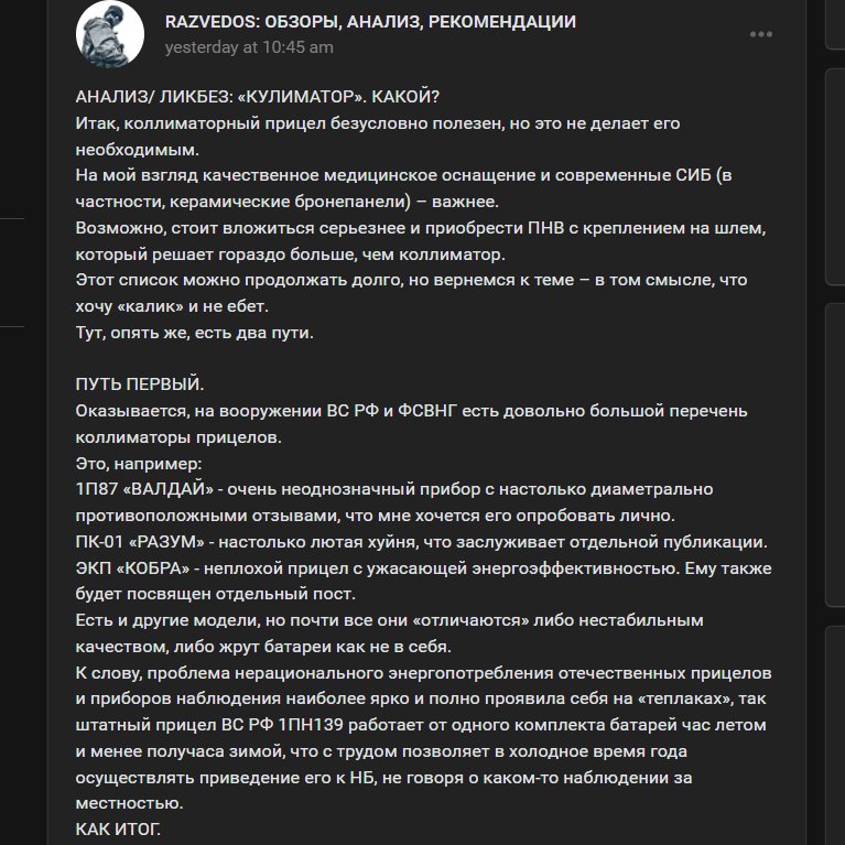 Many spetsnaz purchased their own suppressors but they can't be used without an adapter, which also affects alignment. He also talked about day optics, but said that it is more important for soldiers to have modern medical equipment and armor/plates. 3/