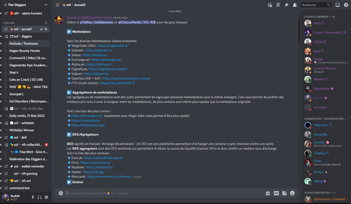 Ils ont tout mis en place, à commencer par un channel "Accueil" qui comporte tous les liens, infos et autres astuces pour se lancer avec succès dans cette jungle NFT ✅