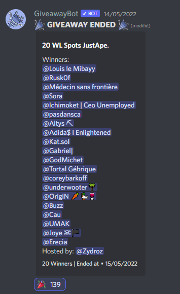 Et grâce à @MoonMoon_IX/@tyesweb3, on a obtenu un total de 14 WL dessus 🤩