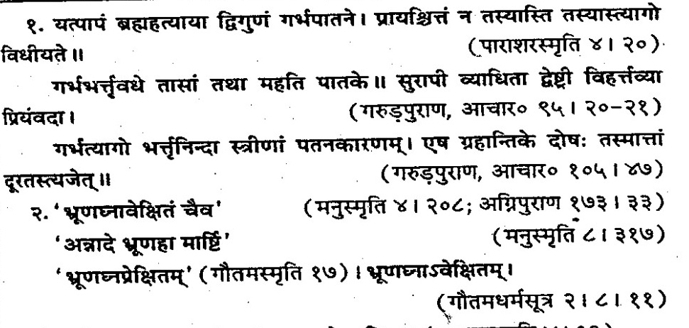 गर्भपातका पाप १. ब्रह्महत्या से जो पाप लगता है, उससे दुगुना पाप गर्भपात करने से लगता है।