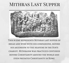 The Tauroctony represents the Entire Cosmos. What is especially interesting is in the Top Corner, the 4th Picture, Zervan (Kronos/ Uranas) Handing over the Scepter of the World to Ahura Mazda who some equate to Zues/ Jupiter.