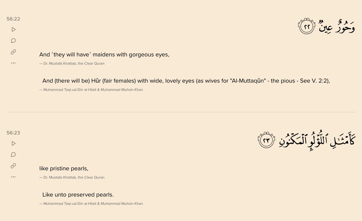 You still end up with men having beautiful women that are physical embodiments of these men's deeds in this world as wives.