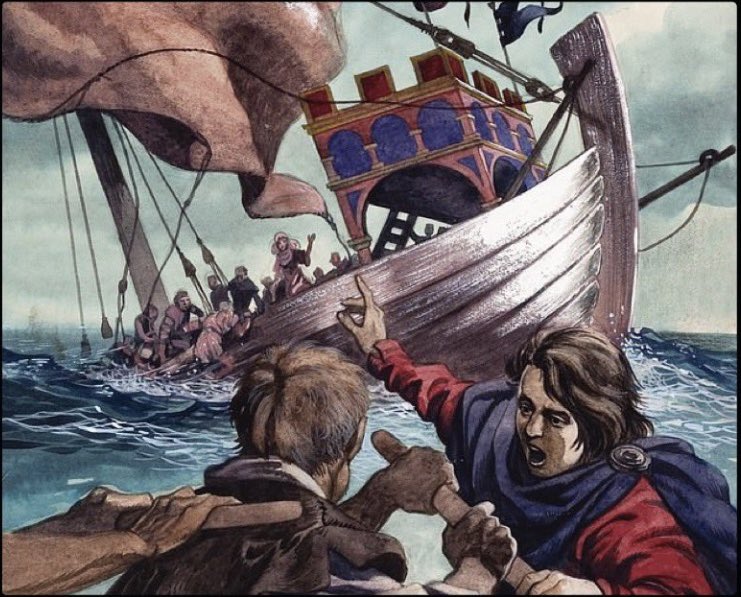 Hoping to stretch the defenders, the Ottoman fleet tried to enter the Golden Horn. However, an iron chain lay across the entrance. The Ottomans couldn’t destroy the chain & Mehmet whipped his admiral after four ships laden with supplies & troops ran the blockade into the harbor.