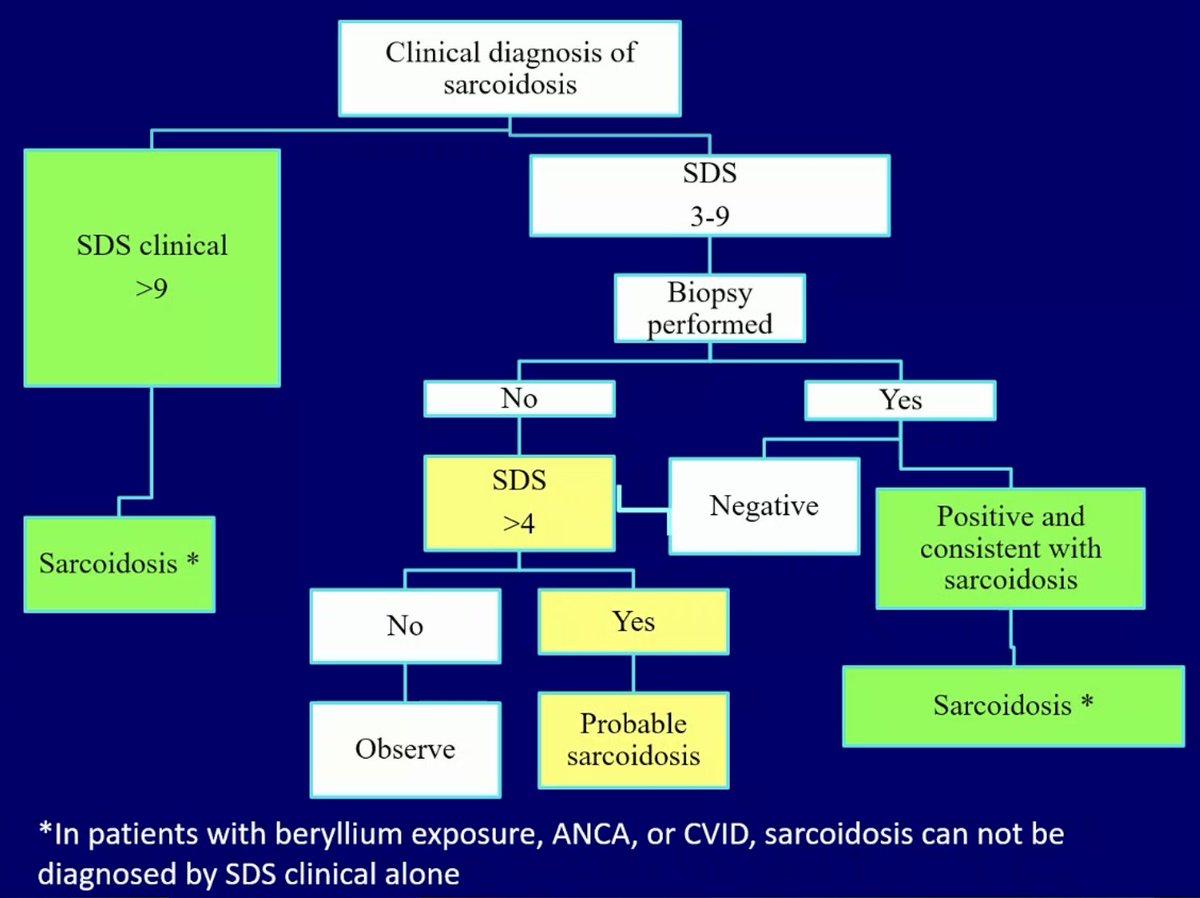 Use the Sarcoidosis Diagnostic Score to help in diagnosis