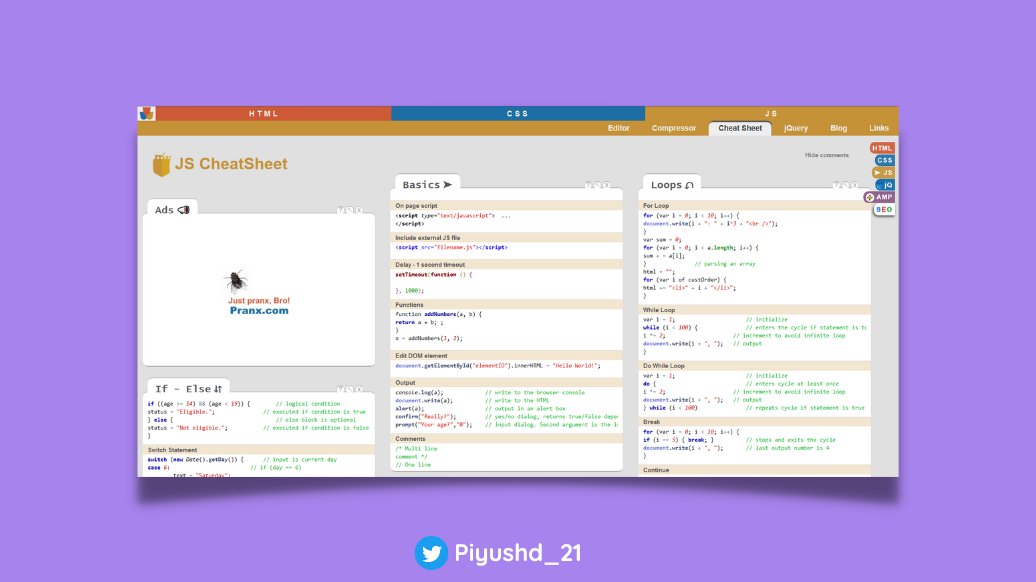 TECH TWITTER - There are many Amazing people who have made some CheatSheets and have provided them for FREE.