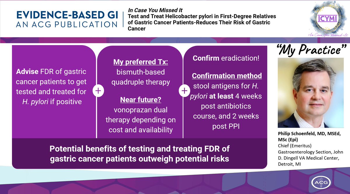 “Test and Treat Helicobacter pylori in First-Degree Relatives of Gastric Cancer Patients-Reduces Their Risk of Gastric Cancer”