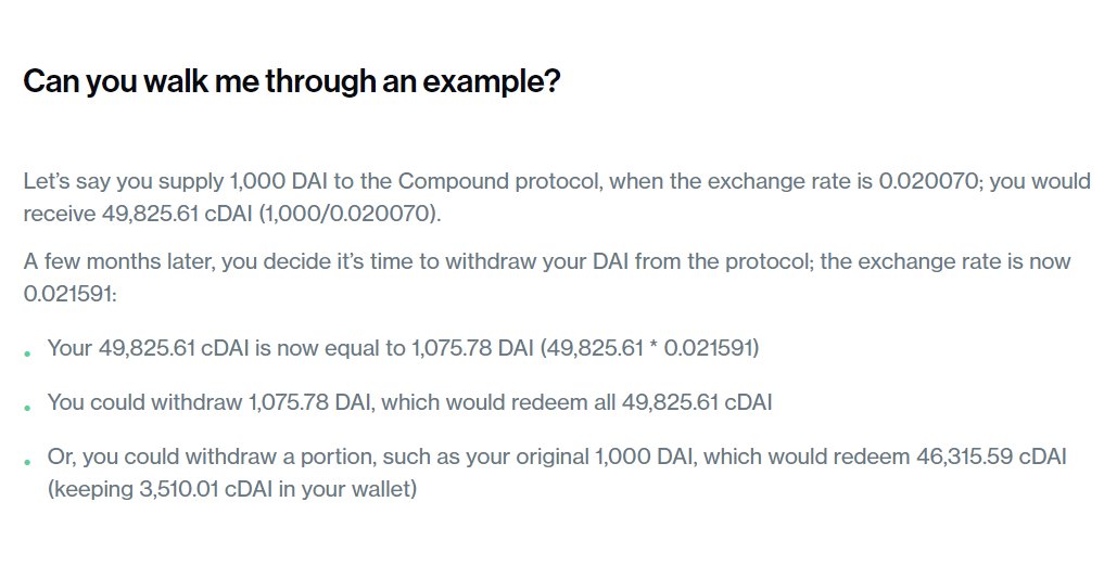User’s deposit = Total Deposits * user’s cTokens / Total cTokens