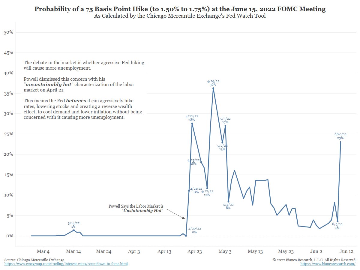 Remember May payroll was 390k, 11+m open jobs. They can crush stocks ("tighten financial conditions") without >unemployment, so they will.