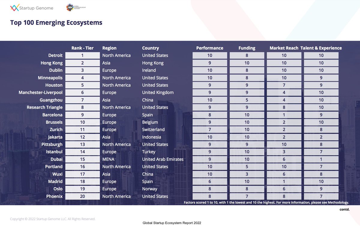 أفضل المدن في تصنيف الأنظمة البيئية الناشئة للشركات الناشئة 2022: