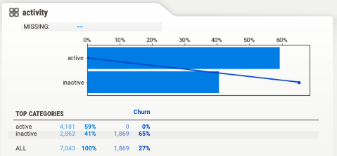 β’ `activity = "active"` meaning the customer used their phone 2 weeks prior to the churn rate.