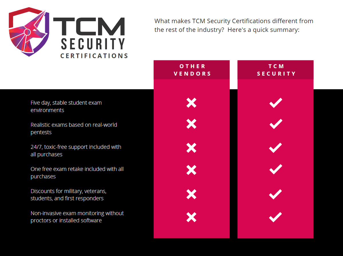 هذه الشهادة مقدمة من أكاديمية @TCMSecurity التي يديرها @thecybermentor وهو مدرب معترف به عالميًا وذو خبرة سابقة في المجال تتجاوز 10 سنوات وقد درب ما يتجاوز 300 ألف متعلمـ/ة ضمن جهات حكومية ومهنية كبيرة.