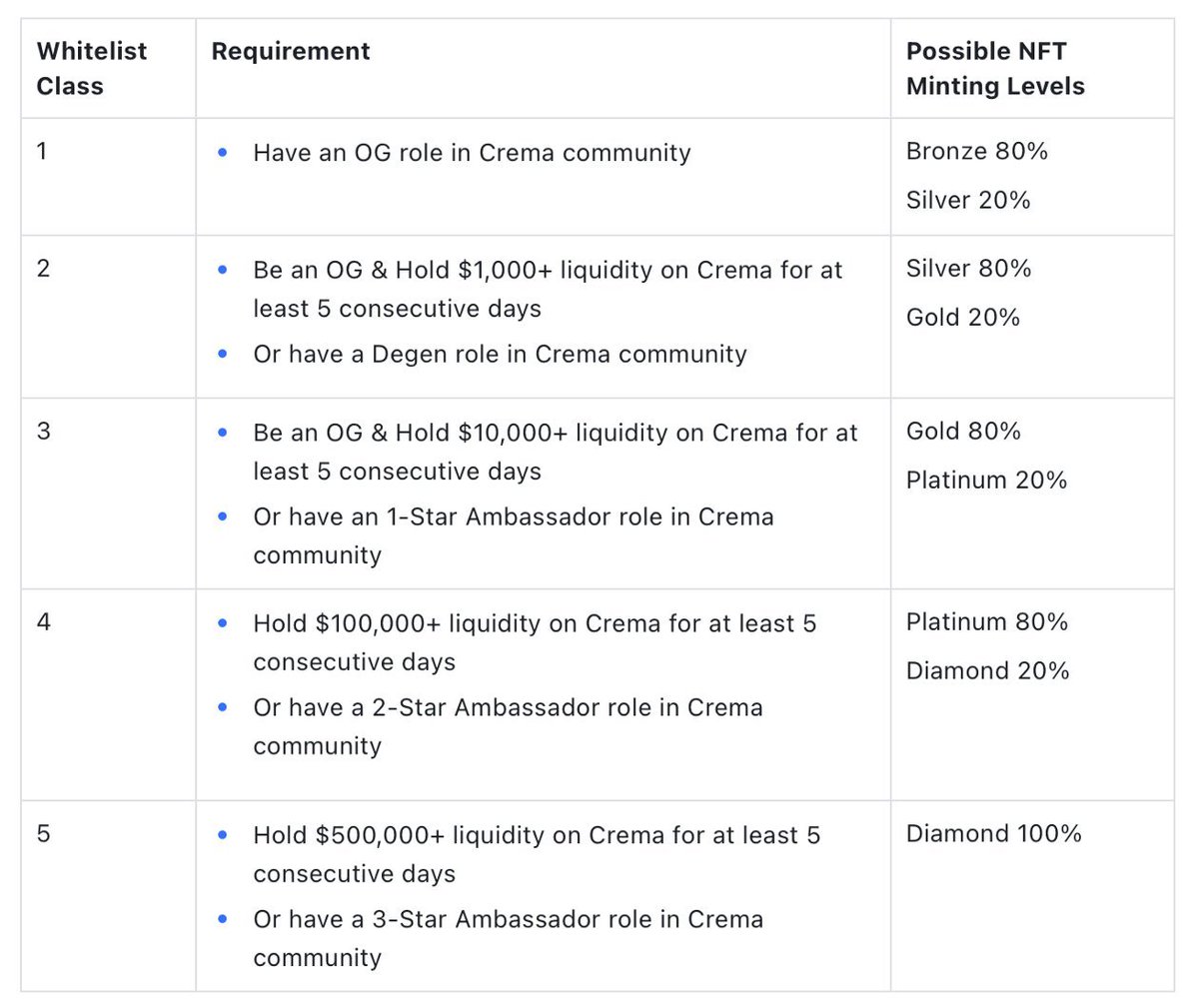 Vous pouvez aussi devenir ambassadeur pour @Crema_Finance, vous permettant ainsi de mint des #NFT de niveaux supérieurs.