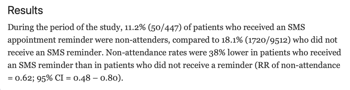 We found that people were 6x more likely to no show if they booked an appointment > 5 days out.