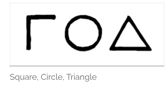 Or is this why Pythagoras chose to reduce all manifestation of form to squares, circles & triangles? The Greek letter G (gamma) is in the form of a Mason’s square. The letter 0 is a circle, and the letter D (delta) a triangle, spelling 'God'. The ⬜, ⭕ & 📐 encoding Divinity.