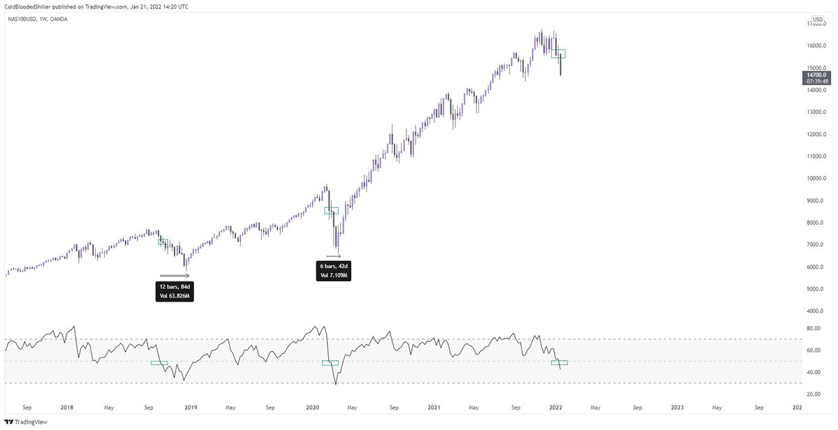 RSI by default has a 14 period lookback range which is why we use this data as a simple way to ensure we're not producing outrageous divergences that don't match the data.
