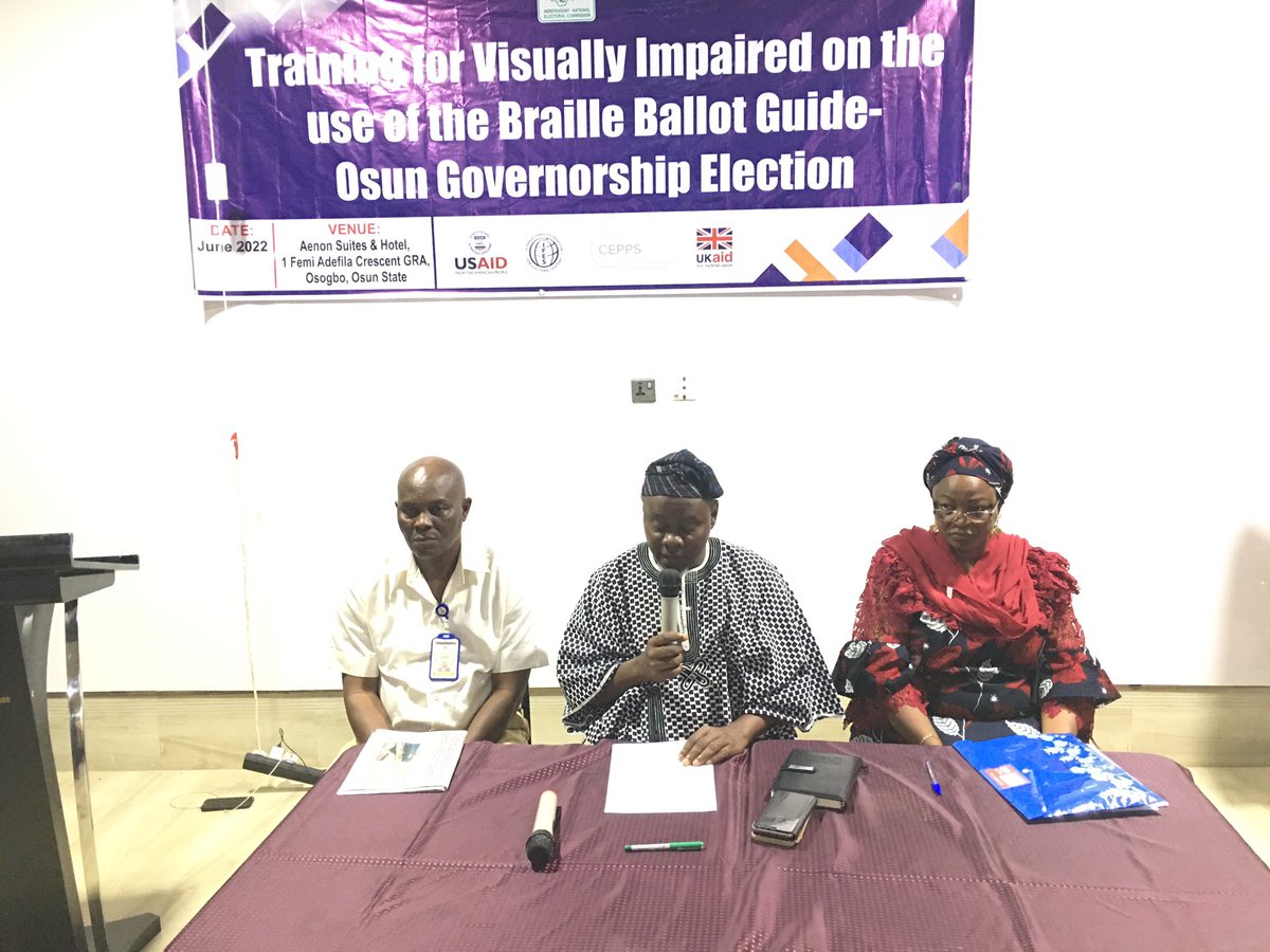 Opening remarks by the REC Osun State, Prof. Abdulganiy Olayinka Raji at the ongoing Voter Education and Sensitization for Visually Impaired Voters on the use Braille Ballots ahead of the #OsunDecides2022 election slated for 16th July 2022.