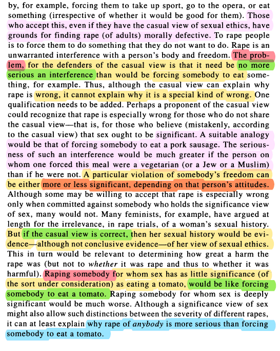 Philosopher David Benatar points out that this feminist logic actually permits rape, but the logic that bans rape also bans promiscuity (sex outside marriage/casual sex)