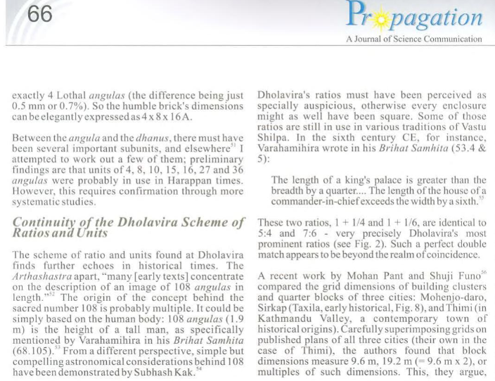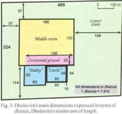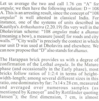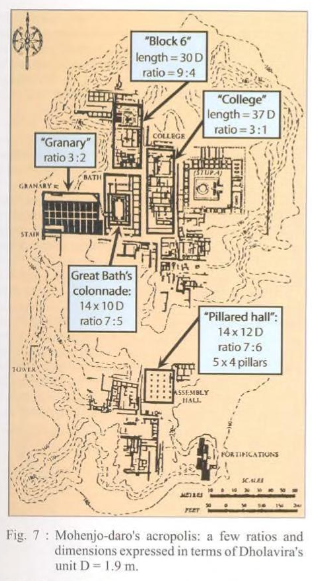 The author of this paper used "Dhanus" as 1.9 meters to evaluate dimensions and found that #harappan were not only fond of ratios but applied to all settlement of that period with some MOE