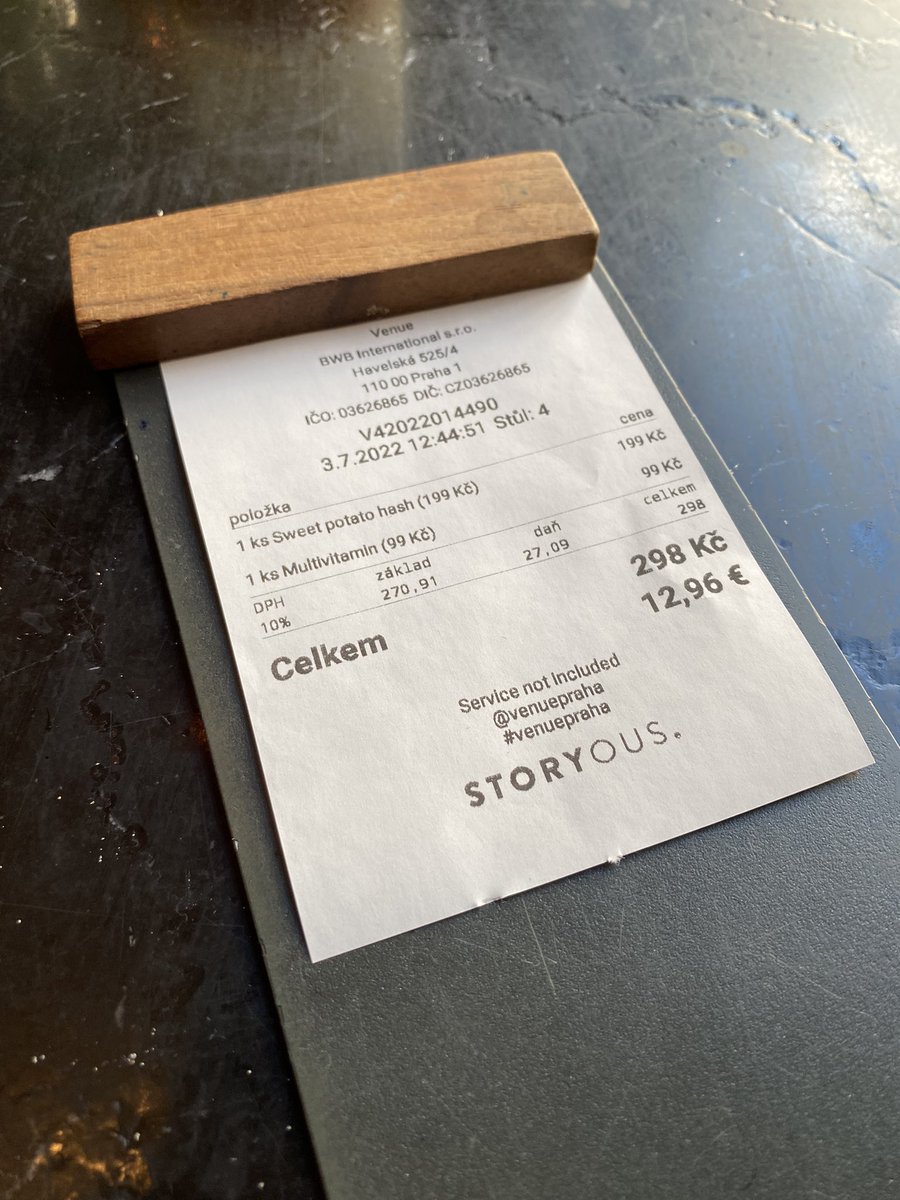 بلغت قيمة الطلب، بإلإضافة لمشروب غازي، ٤٢٦ كرونه ( ٦٦ ريال )؛ سعر رخيص جدا مقارنة بلذة الطعام!