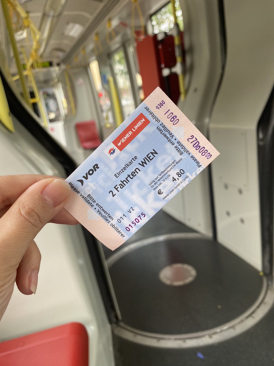 لاتنسى ختم التذكرة في الذهاب والعودة من الجهاز الموجود داخل الترام، وقبل ذلك تأكد من السائق أو ممن حولك بأن العربة هي العربة الصحيحة التي ستأخذك لقصر شونبرون #فيينا.