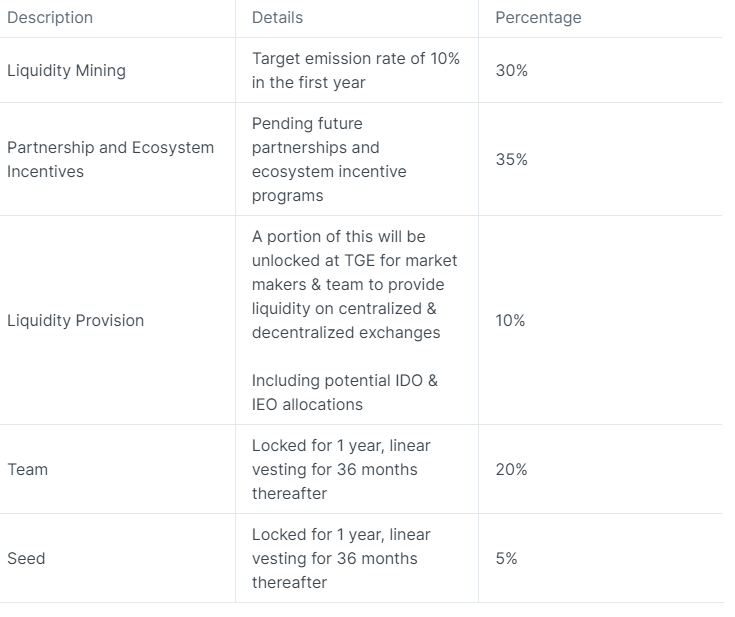 Le token aura une max supply de 1 milliard et aura la répartition suivante :