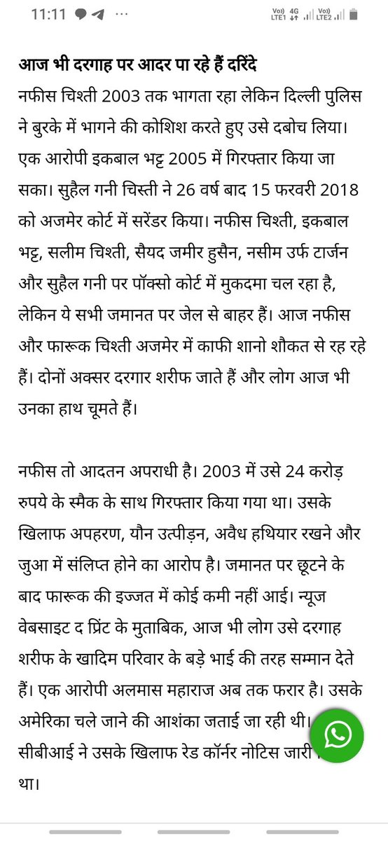 The mastermind of this mass gangrape of Hindu girls holds a seat of honour at Ajmer Dargah. Pilgrims, including Hindus, kiss his hand. In 2003, he was also arrested with contraband drugs worth ₹24 Crores. Only @myogiadityanath model can take care of such demons.