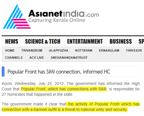 National Development Front (NDF), Karnataka Forum for Dignity, & Manitha Neethi Pasarai & others SIMI-backed orgs. merged in 2006 to form PFI.