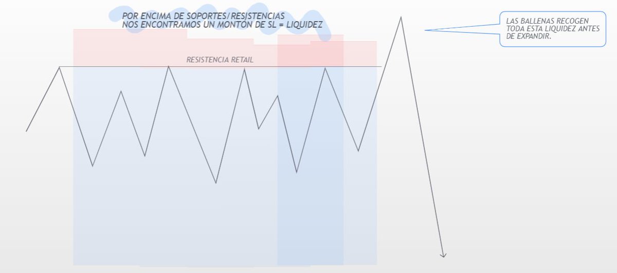 La liquidez se encuentra en zonas donde los operadores han entrado al mercado, las ballenas crean suelos, techos, líneas de tendencia…