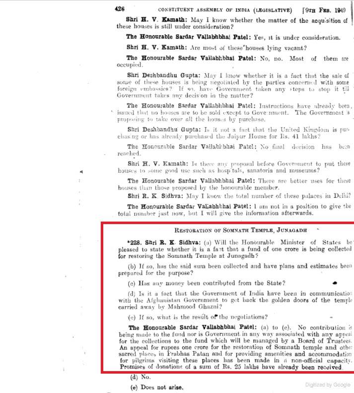 So the narrative in circulation is that Patel was keen on renovating the temple but Nehru objected.
