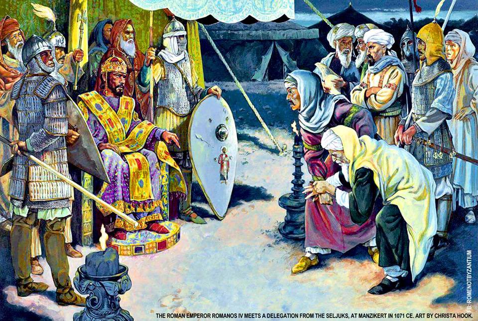 On the morning of August 27th, Seljuk soldiers looted the dead & found the injured Romanos, surrounded by his fallen guard. When they took him before Alp he didn’t believe this warrior, caked in blood & dirt, could be the Byzantine Emperor.