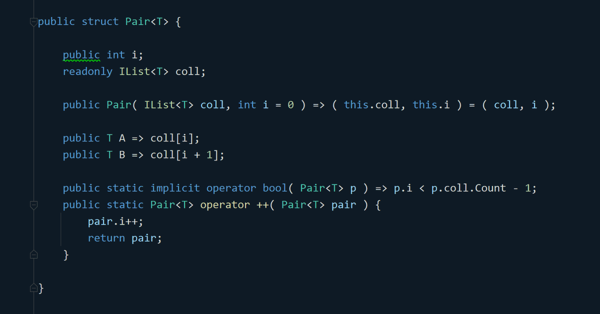 in my C# efforts to iterate elements in pairs w/o allocation, @khyperia says I just accidentally did a C++