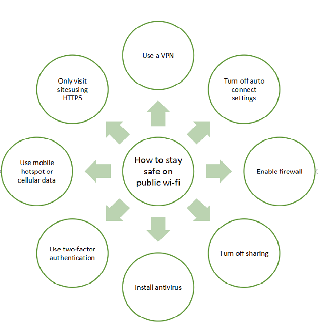 لكن هناك عدد من الاحتياطات الي تقوم بها لرفع مستوى الامان خلال اتصالك بهذا النوع من الشبكات في حال اردت استخدامها.