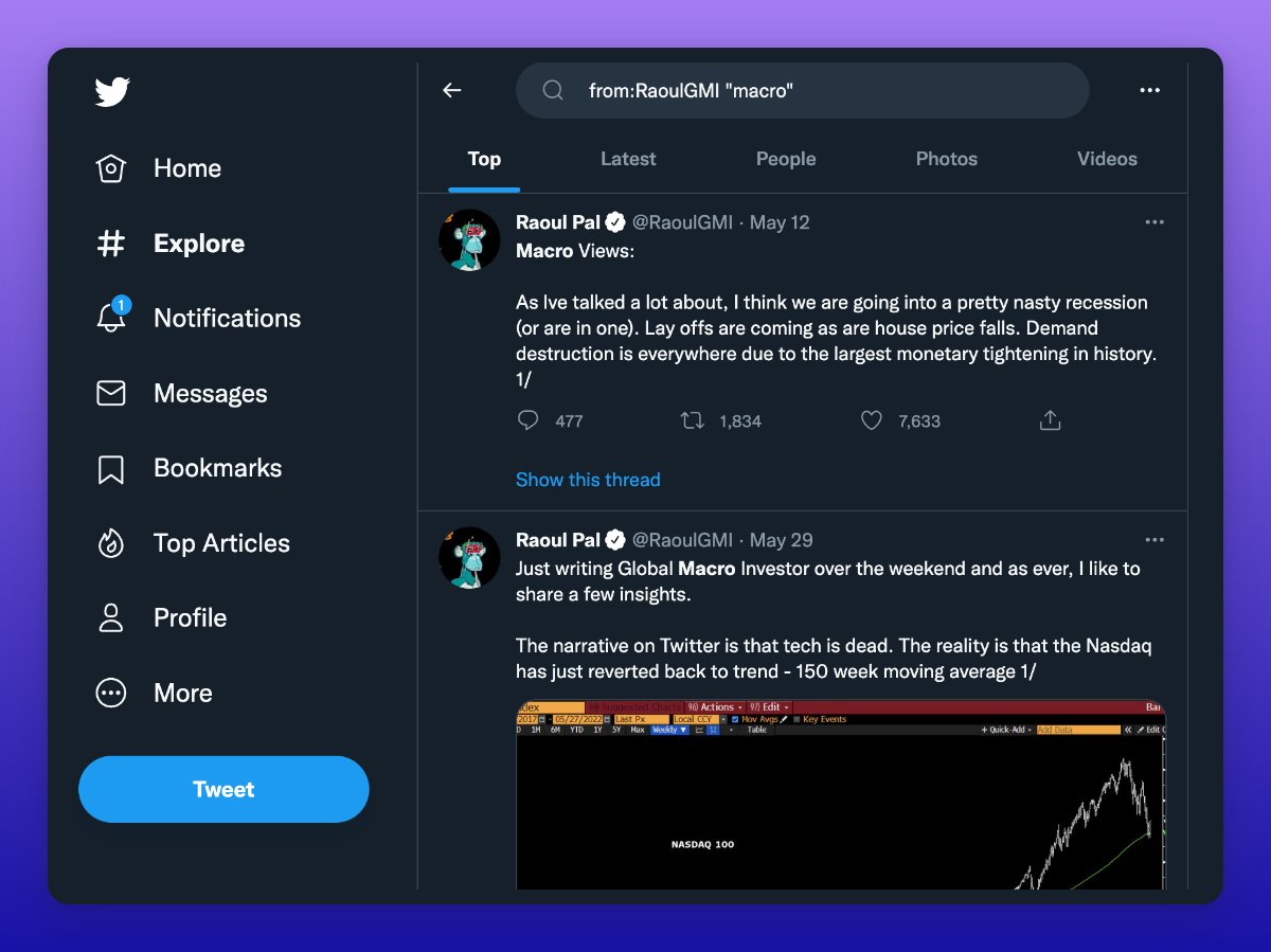 You vaguely remember Raoul Pal saying something about macro during the May crash, and want to find the tweet...