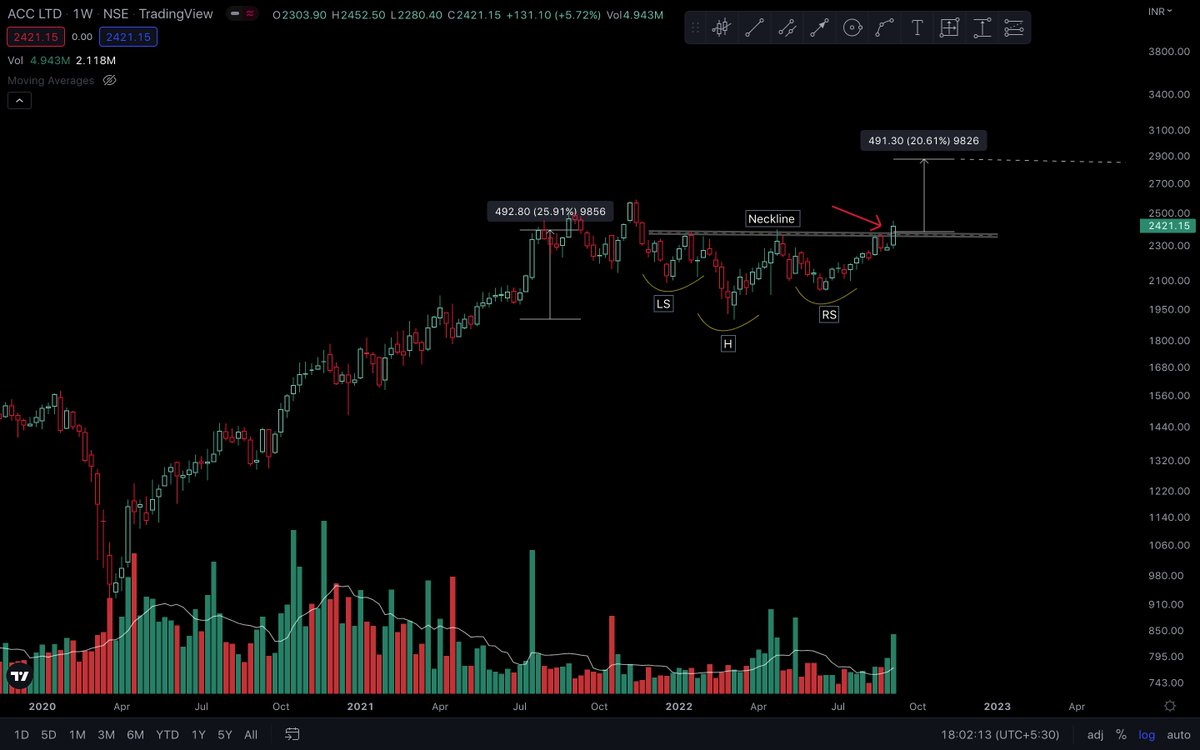 BO of the Neckline shows trend reversal by forming a Higher swing high which is also the entry point.