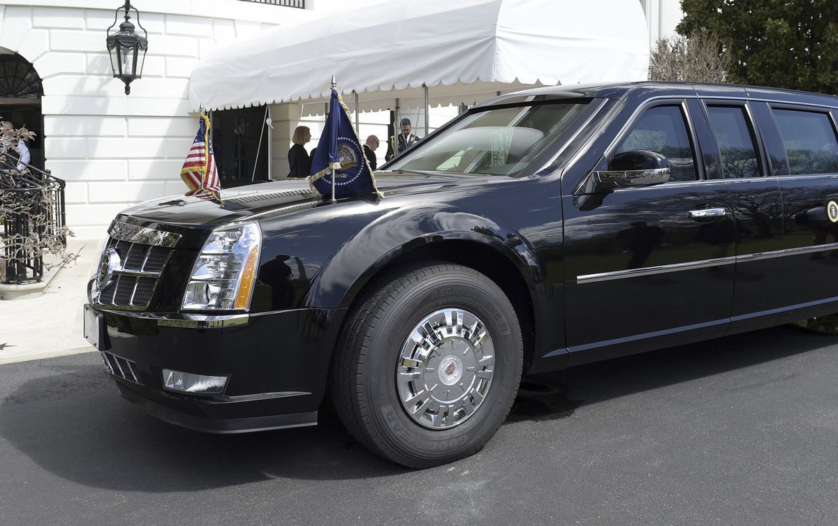 وسيارة #الرئيس_الأمريكي من طراز "كاديلاك" ومصنوعة خصيصا للخدمة السرية الأمريكية، وقادرة على استيعاب نحو 7 ركاب بشكل مريح