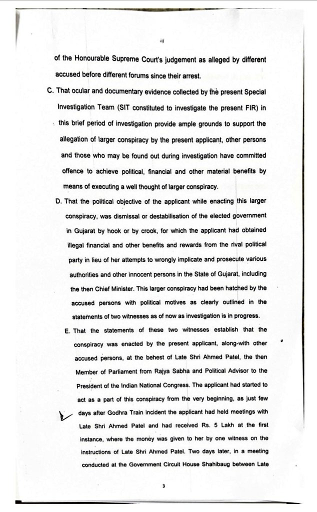 Teesta Setalvad's game plan revealed with documents - Conspiracy was hatched in connivance with Congress leader @ahmedpatel to destabilize the Gujarat govt.
