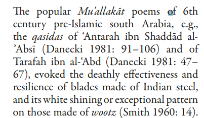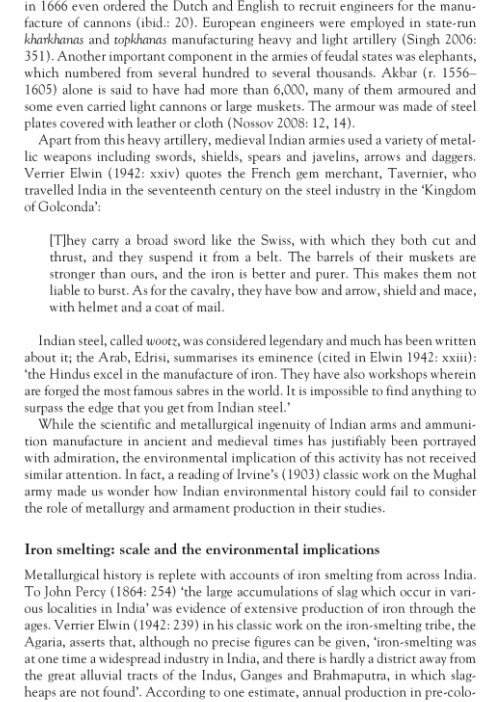 French gem merchant, Tavernier, who travelled India in the 17th century on the steel industry in the 'Kingdom of Golconda' vowed by the kind of arms Indians made.